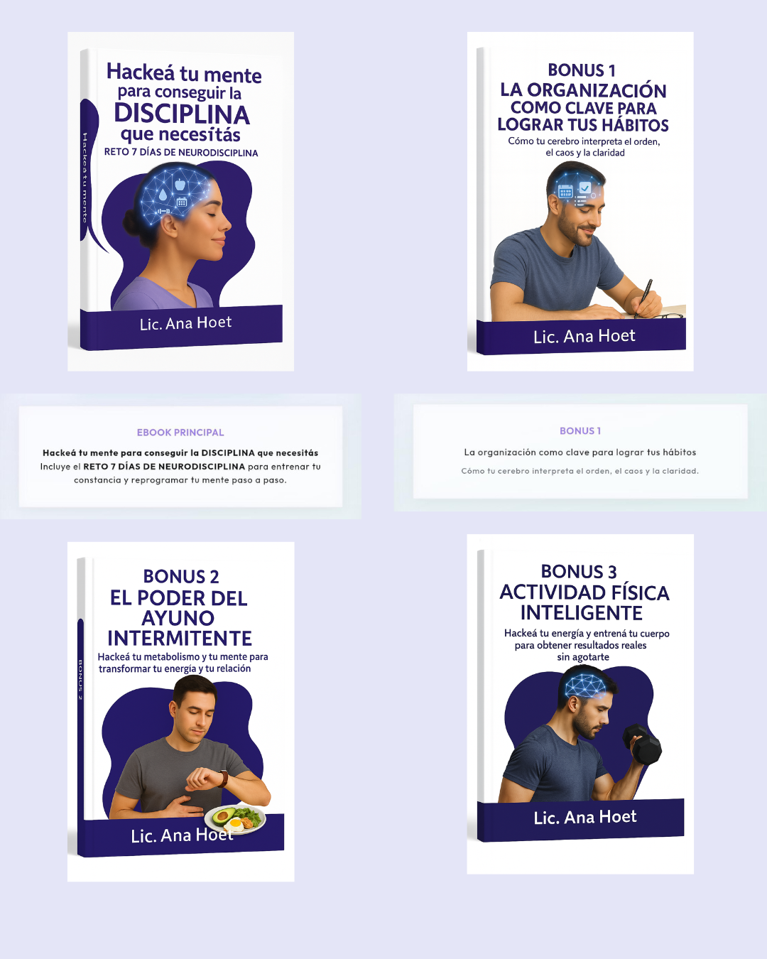 EBOOK + RETO 7 DÍAS DE NEURODISCIPLINA — más 5 BONUS de regalo para potenciar tu transformación.